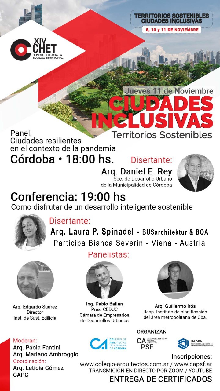Información en : https://www.colegio-arquitectos.com.ar/novedades/evento/16/chet-territorios-sostenibles-ciudades-inclusivas/509